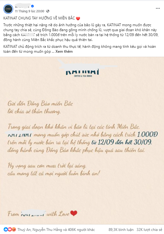 Thương hiệu K “trích 1.000đ trên mỗi ly nước để hỗ trợ người dân miền Bắc” có đáng bị chỉ trích?