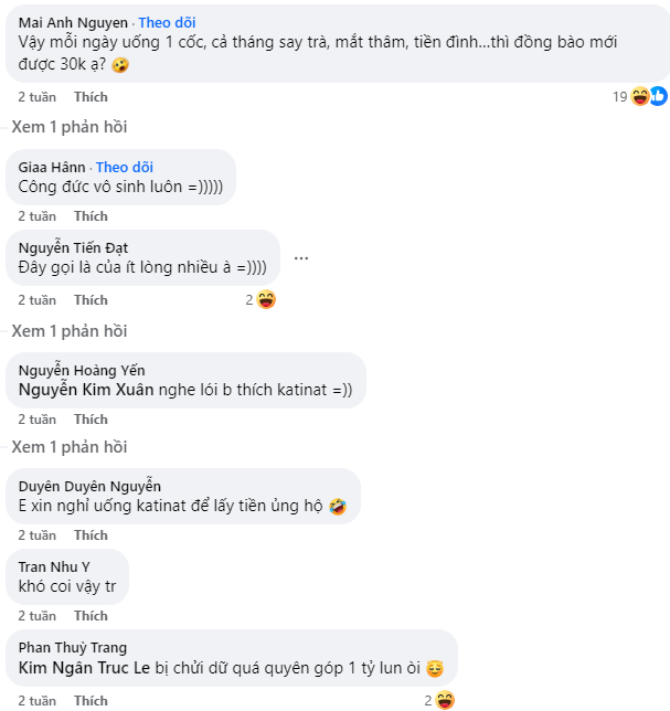“Của ít lòng vòng”, “Mồi chài kinh doanh”, “Phải uống 5 cốc K thì Đồng Bào mới đc 1 chai Lavie” là những bình luận đang nhận được rất nhiều sự đồng tình của cộng đồng mạng trong bài viết chia sẻ về chương trình từ thiện hướng về đồng bào miền Bắc của thương hiệu K